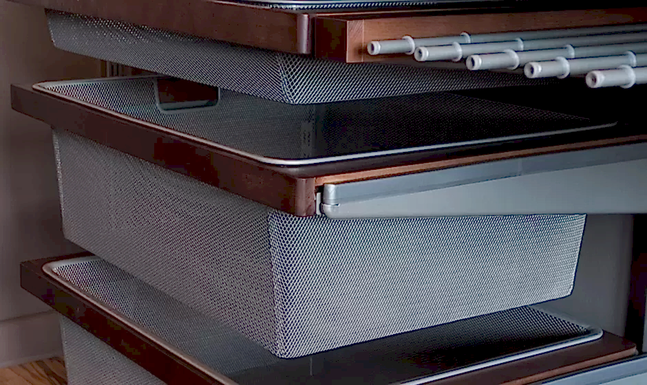Все выдвижные элементы по желанию имеют версию со встроенным доводчиком немецкого производителя HETTICH. Новый уровень Pin-Up гардеробных систем.