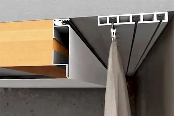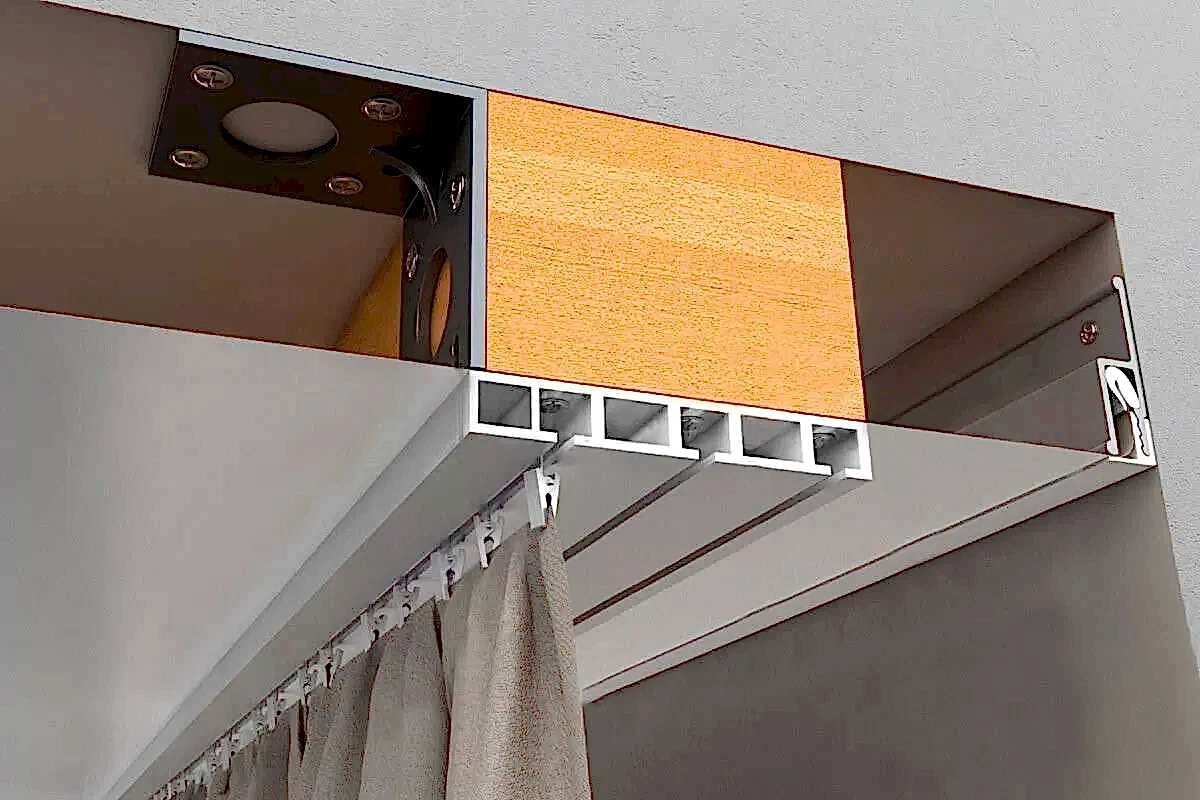 Это усовершенствованная ниша - Box-карниз. Он устанавливается в нишу и полностью закрывает черновой потолок. И нет необходимости приводить в порядок часть открытого потолка. Когда Вы заглянете в предполагаемую нишу Утопленным Pin-Up только карниз. Это очень актуальная система, когда нужно разделить комнату на зоны. Наши клиенты уже оценили этот вид карниза.